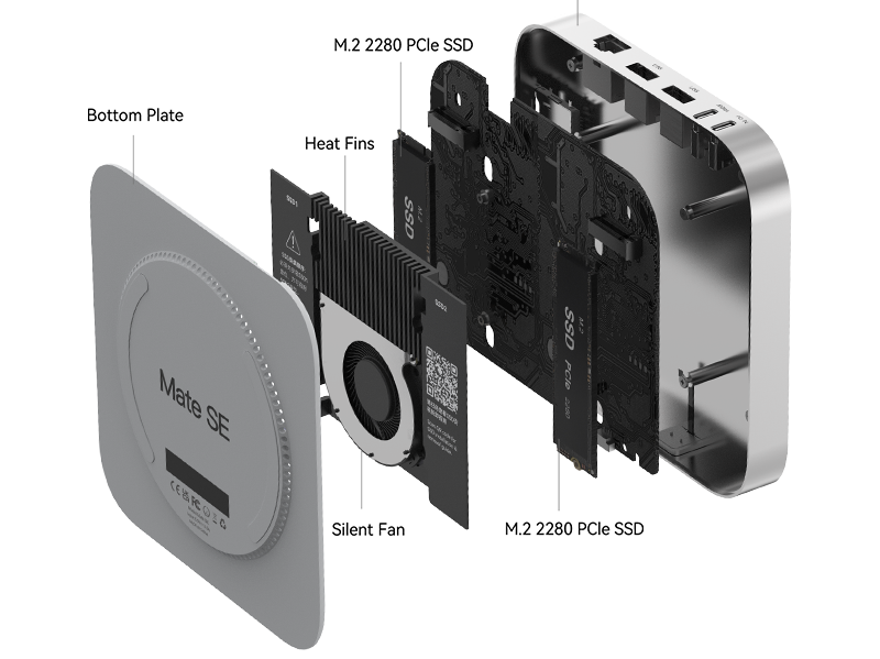 Ausgestattet mit einem Kühlkörper und 360°-Kühlöffnungen kann der Mate SE lange Zeit kühl bleiben und mit hoher Geschwindigkeit laufen.