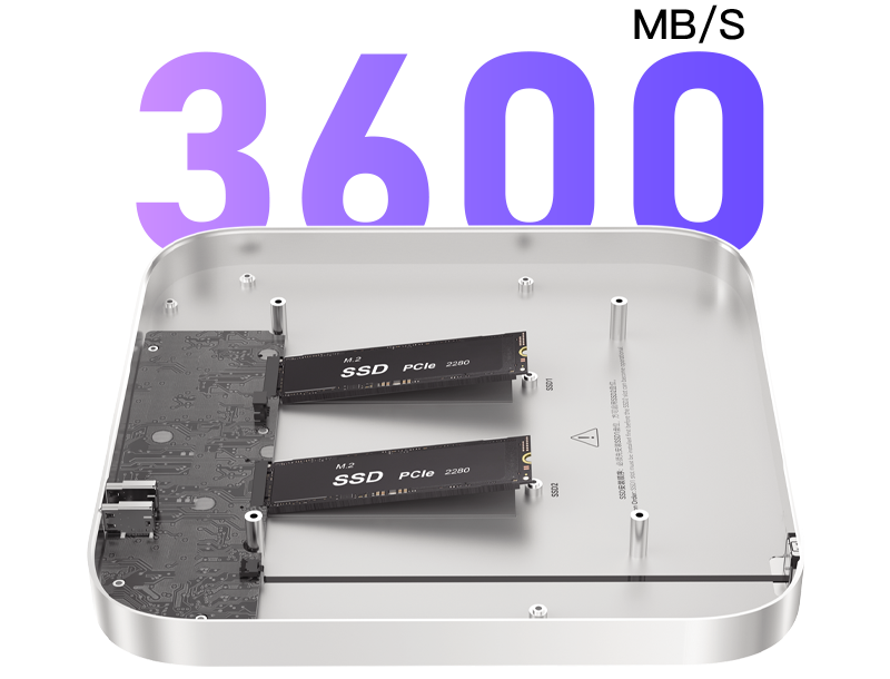 Verfügt über zwei M.2 2280 PCle 4.0 x2-Steckplätze, die eine Bandbreite von 32 Gbit/s und bis zu 8 TB pro Steckplatz oder 64 Gbit/s und bis zu 16 TB insgesamt unterstützen.