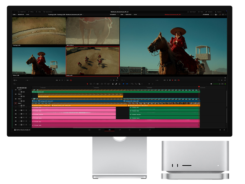 Mit bis zu 16 TB schnellem Speicher wird Ihr kreativer Workflow rasant! Alles, von der Videobearbeitung, Farbkorrektur, Audiomischung und 3D-Rendering bis hin zur Postproduktion, wird reibungsloser und effizienter als je zuvor.
