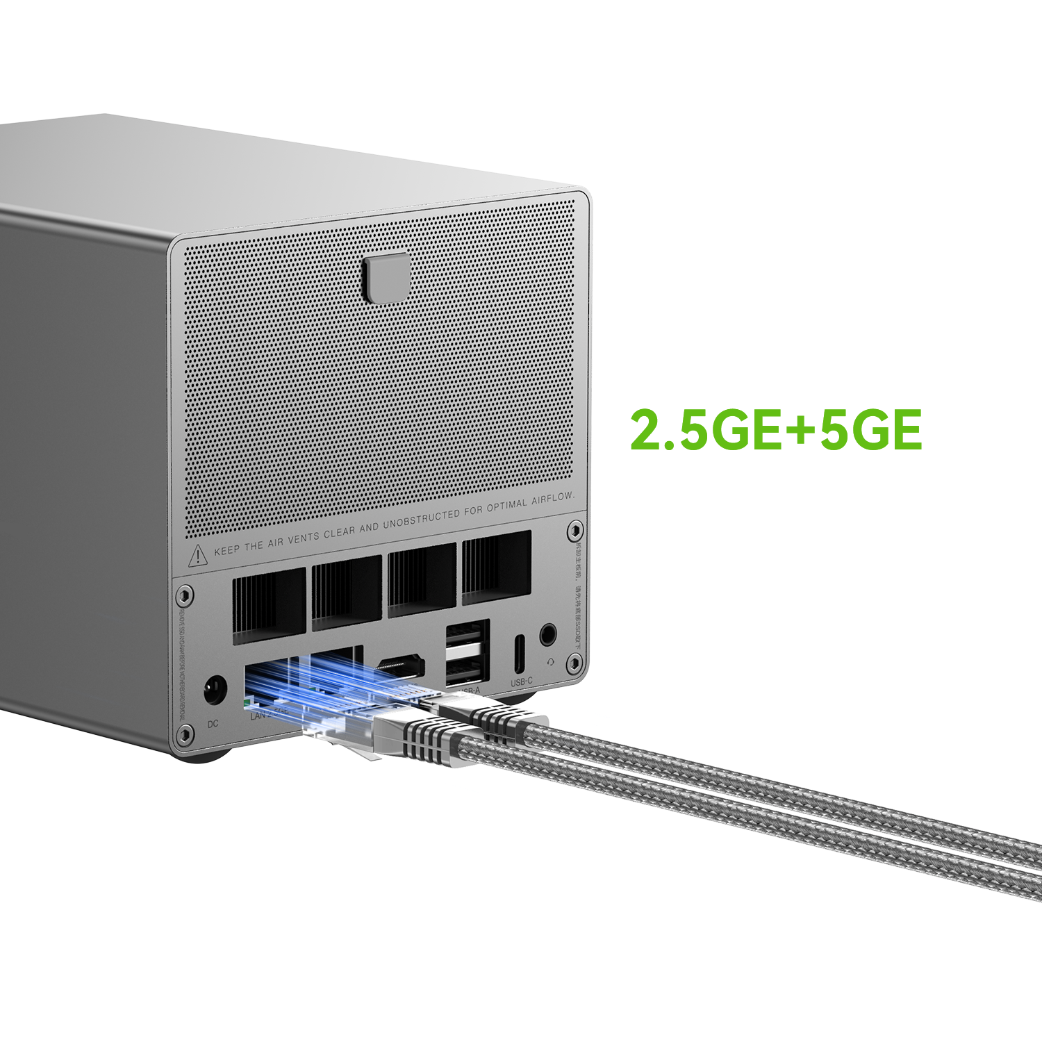 Equipped with dual 2.5GE and 5GE network ports, it enables smoother large file transfers and multi-device networking, making it suitable for home and small office scenarios.