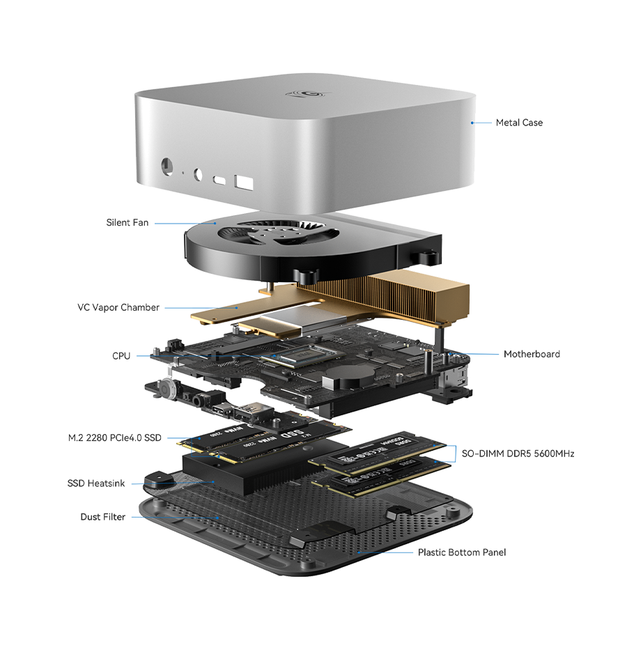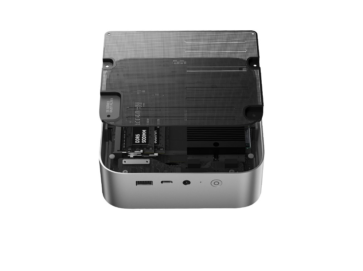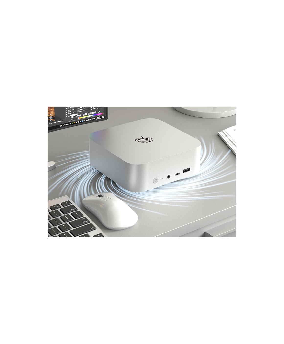 Der Systemlüfter und der Kühlkörper leiten die Wärme durch den Luftstrom ab und bieten so eine effiziente Kühlung für CPU, SSD und RAM.