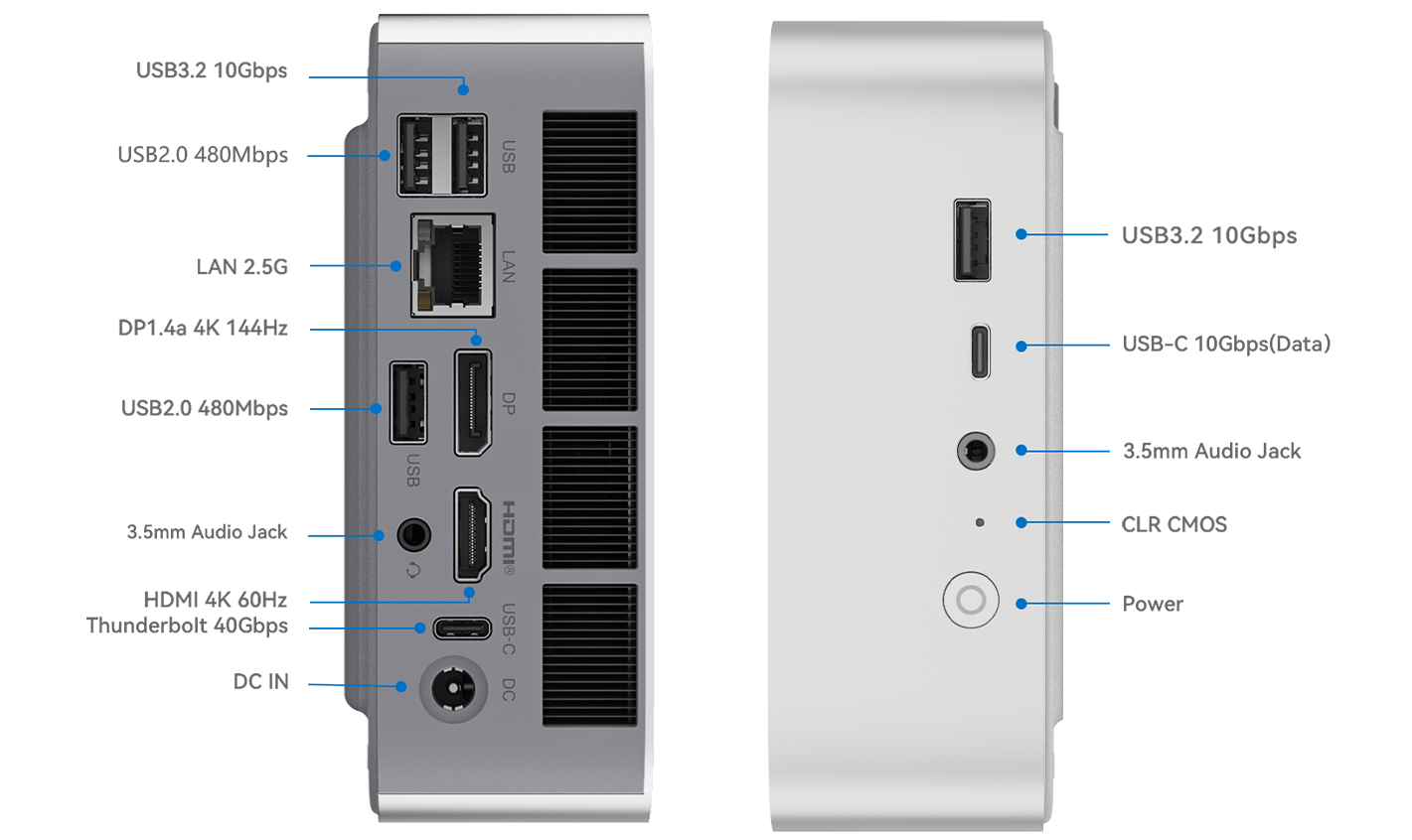 DP1.4a(4K 144Hz)*1+HDMI(4K 60Hz)*1+Thunderbolt 4(40Gbps/TBT3/PD/DP1.4)*1 Unterstützt 4K-Ausgabe