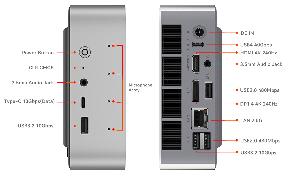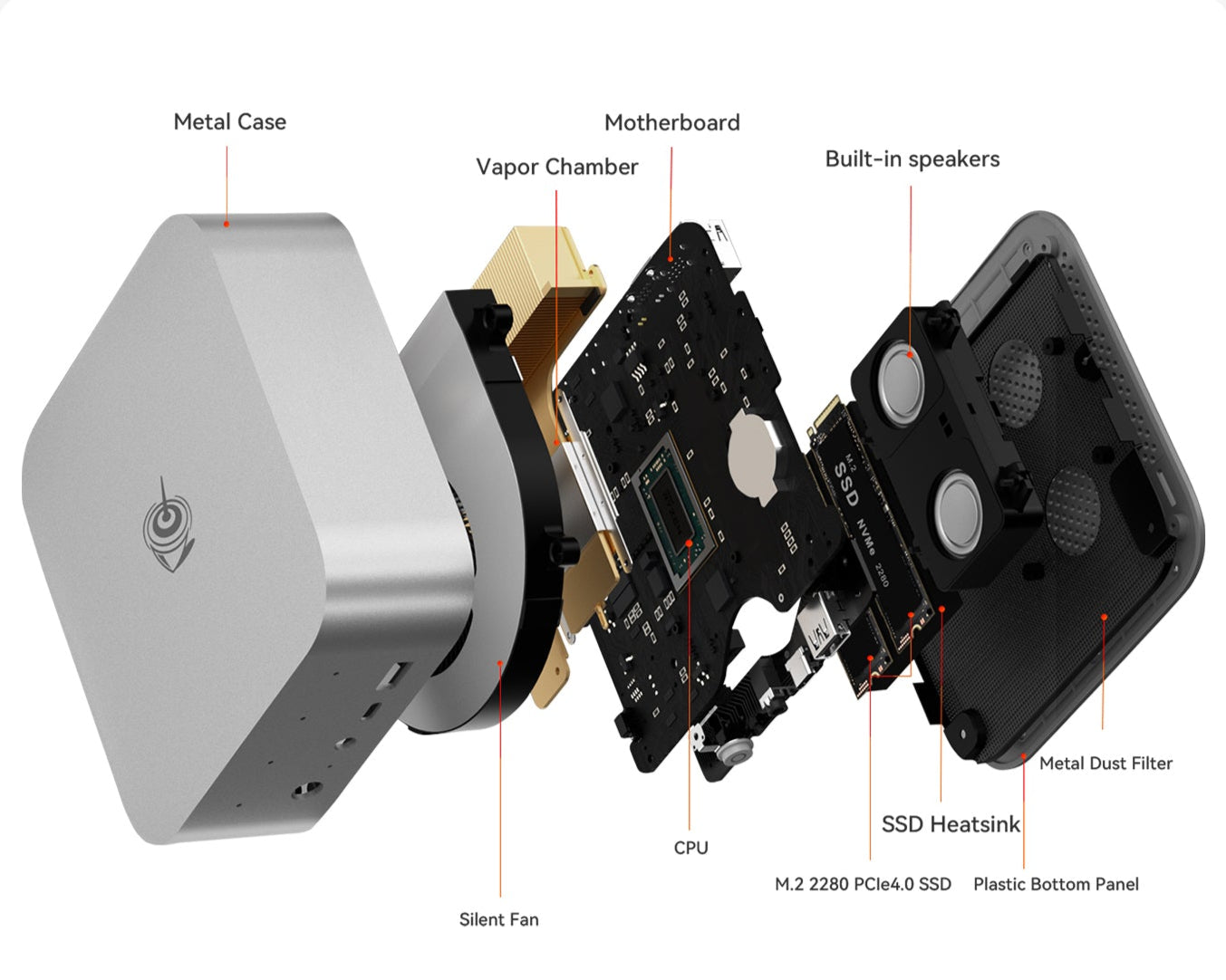 Die integrierten Doppellautsprecher liefern hohe Lautstärke und realistische Stimmen, optimiert durch DSP und verstärkergesteuerte Frequenzteilung. Ohne externe Audiogeräte bietet Ihnen der SER9 Pro sofort nach dem Auspacken ein beeindruckendes Klangerlebnis. *Hinweise: SER9: Ohne Lautsprecher/Mikrofon; SER9 Pro: Mit Lautsprecher & Mikrofon