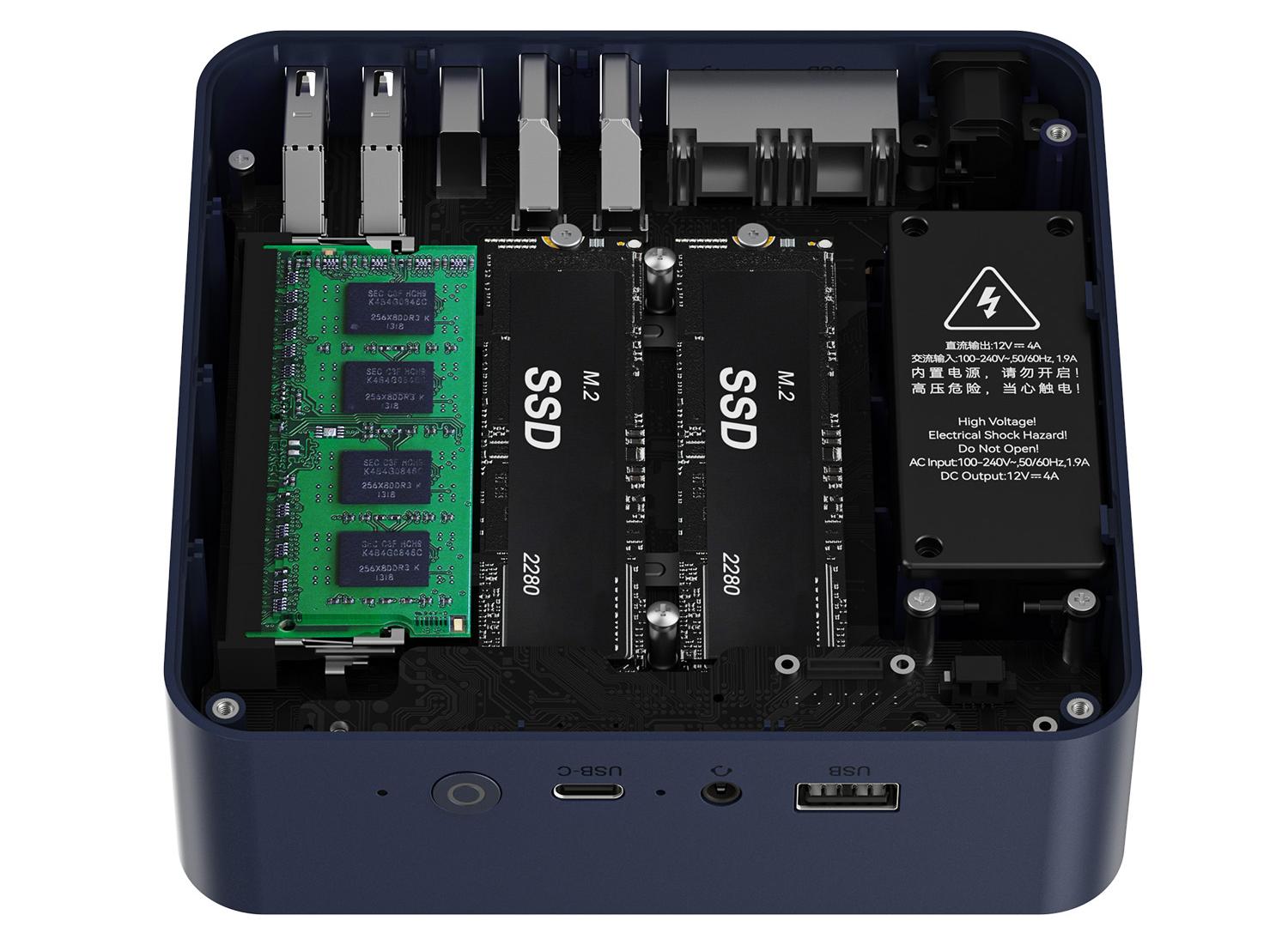 The EQ14 features dual M.2 PCle 3.0 SSD slots supporting up to 8TB of fast internal storage (The retail unit ships with a SATA III SSD), it also supports single-channel DDR4 3200MHz memory of up to 16GB.