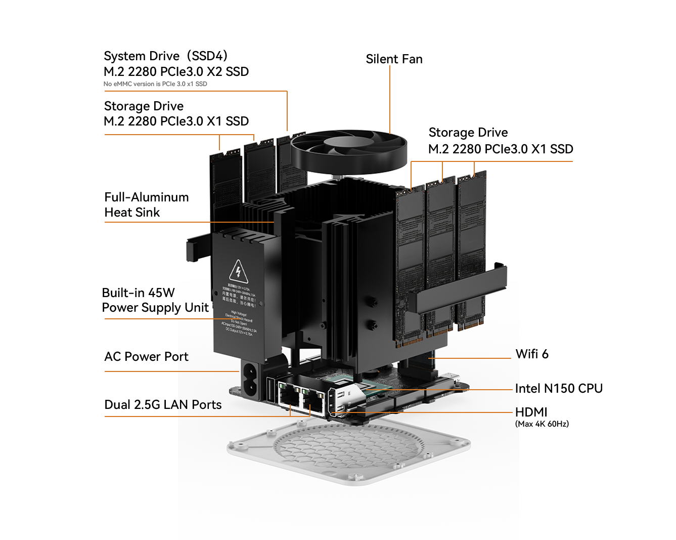 Intel® Twin Lake N150| 6*SSD Max 24TB | Noise-Free Experience | Vertical Airflow Cooling Design | 16GB LPDDR5 | Built-in Power Supply Unit | 64GB еMMC | Dual 2.5Gbps High-Speed Ethernet Ports | 3 Stylish Colors Available | Compact Design